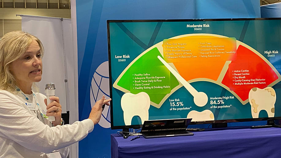 Elevate Oral Care showcased its wide range of products and offered in-booth educational presentations about how its Allday spray and gel can be used by patients for relief of dry mouth. As Cheryl Clements, RDH, MS, explained, dental hygienists should talk to all their adult patients about dry mouth. Products with a neutral pH, like Allday, are safest and most effective, Clements said.